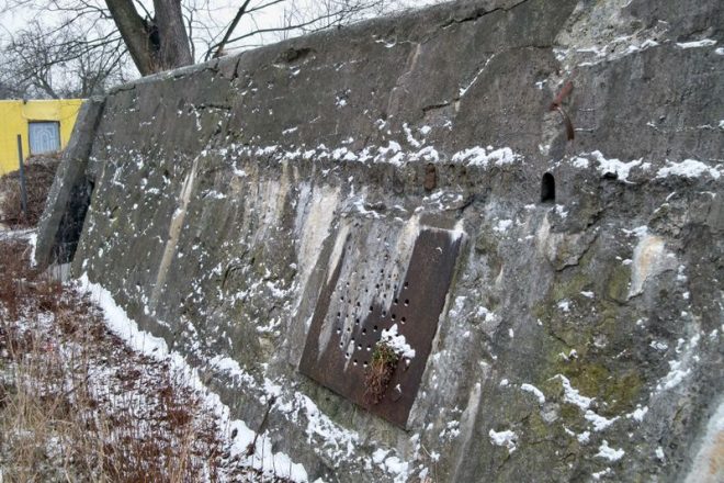 Opuszczony znajduje się miedzy miejscowymi domkami . Częściowo ograbiony z kratownic wewnętrznych zachowała się płyta pancerna chroniąca wlot powietrza do czerpni oraz część drzwi pancernych.
